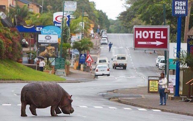 Actually, St Lucia is one of the few places in South Africa where seeing wildlife roaming the streets is fairly common place. Locals and visitors know about the hippos and keep a safe distance. Its estimated that there are around 800 hippos in the area and seeing them in the streets or even in your back yard is not uncommon.